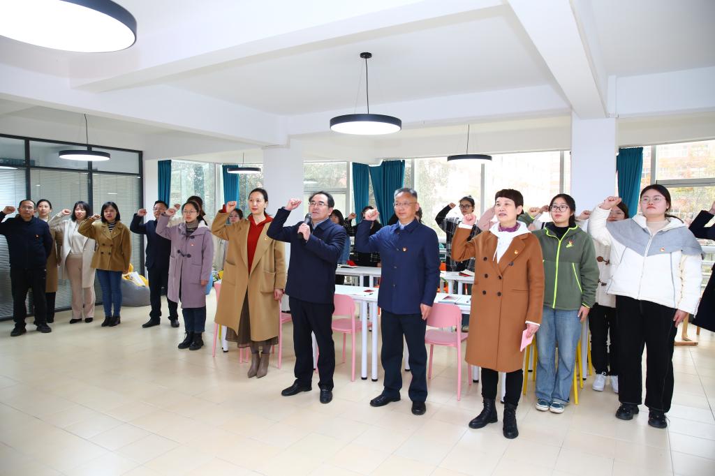 仪式上,滕胜娟介绍了“蓝茑轩”一站式员工社区服务中心的筹建情况、成立背景、中心建设及未来打算。田辉玉、罗锦银、滕胜娟、吴金红共同为“蓝茑轩”一站式员工社区服务中心揭牌。随后,在场师生共同参加“蓝茑轩”一站式员工服务中心启动后的首场主题党日活动。田辉玉带领全体党员重温入党誓词,与在场员工亲切互动,提出希望员工社区中心发挥平台作用,坚持以党建工作为引领,探索“党建+”社区育人体系,让党组织的神经末梢连接到每个楼栋、宿舍。