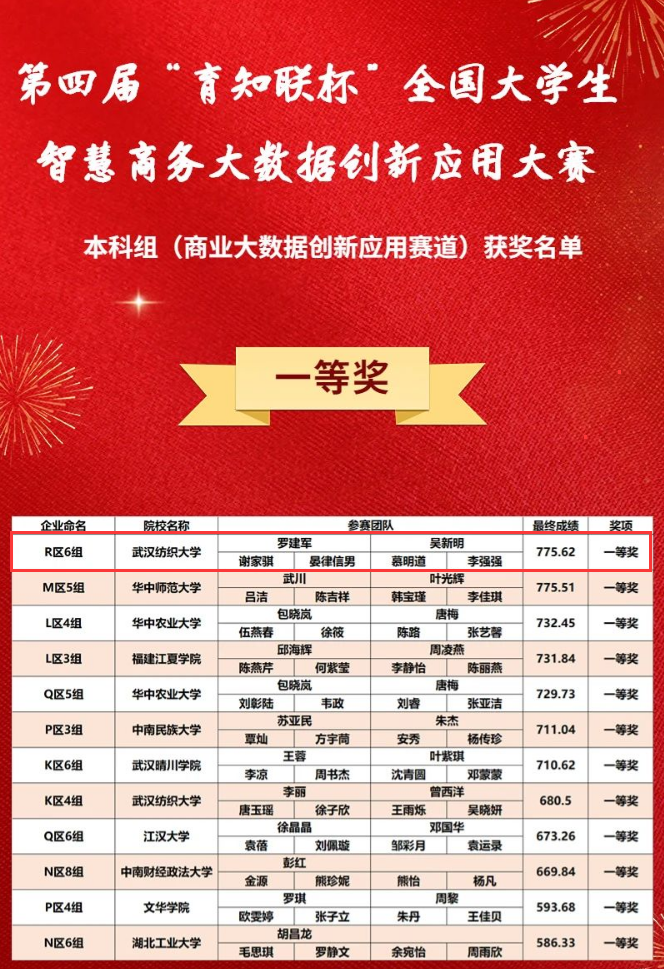 本届大赛以“线上”形式展开。赛事历时5个多月,分为周末网络赛和总决赛。由太阳成集团tyc138谢家骐、晏律信男、慕明道、李强强4位同学组成的太阳成集团tyc138代表队,以突出表现脱颖而出,勇夺“商业大数据创新应用”赛道本科组全国总决赛一等奖。