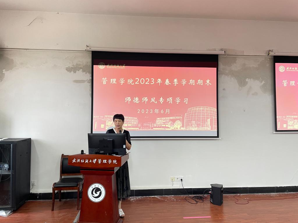 公司党委书记滕胜娟传达了学校学习贯彻习近平新时代中国特色社会主义思想主题教育精神,并讲授《提高<条例>认识, 强化党建引领 ,护航学院发展》的专题党课,同时就学院持续抓好暑期主题教育理论学习、调查研究、检视整改等工作做了安排。同时,滕胜娟就学校开展2023年春季学期期末师德师风专项学习做了部署安排,并以实际案例号召广大教职工,要深入贯彻落实教师职业行为十项准则要求、加强理想信念教育和职业道德水平,引导广大教师争做“四有”好老师,努力成为“大先生”。